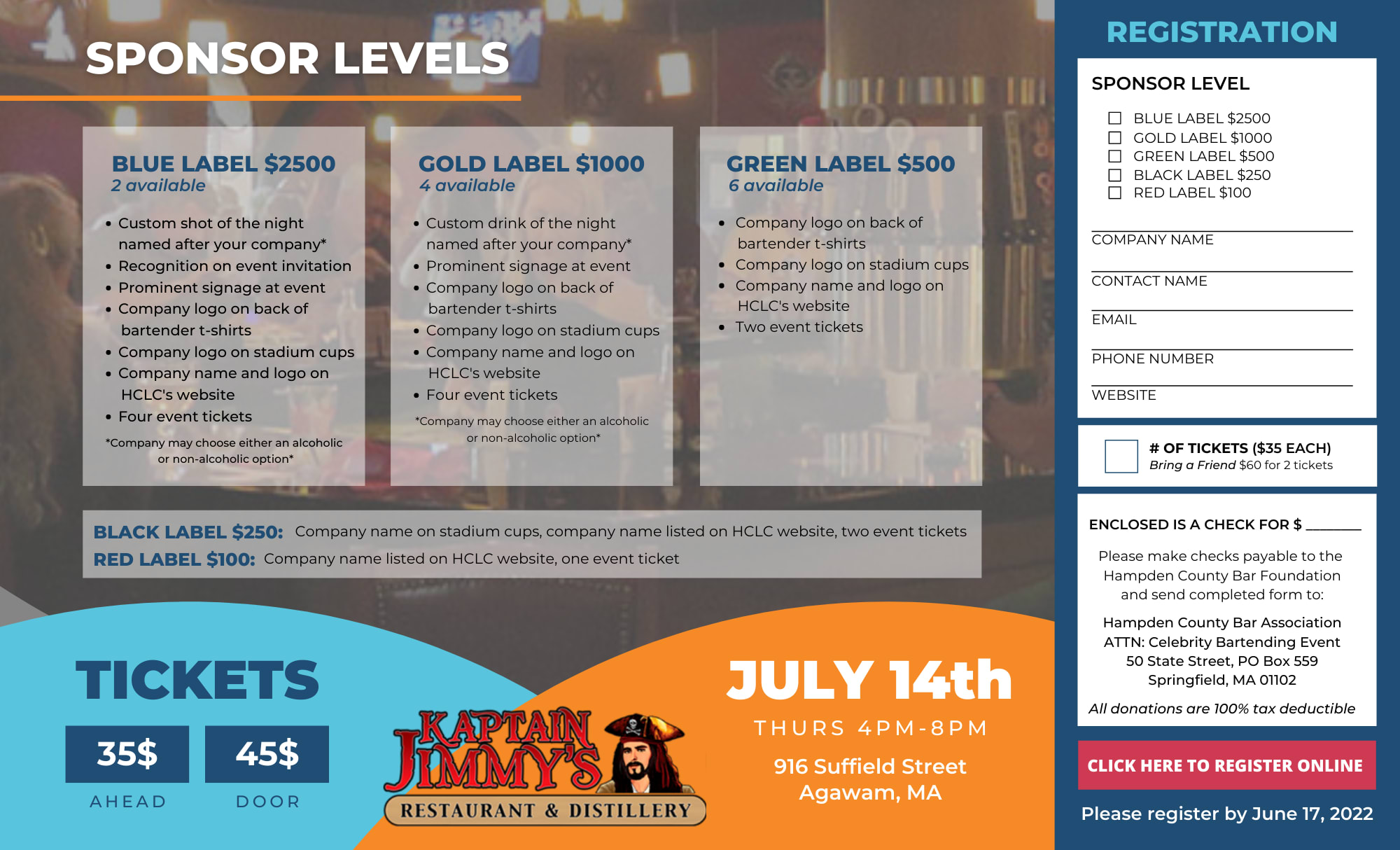 Each year, the Hampden County Legal Clinic provides free, essential legal and law-related services to thousands of area residents in need through a variety of pro bono initiatives and community-based programs. Our mission is to increase access to justice by leveraging the pro bono support of the private bar to serve individuals in the community that would not otherwise have access to legal assistance. In order to fill gaps in services for the underserved, the HCLC depends primarily on private grants and donations. Funds raised at our annual Celebrity Bartending Tip-Off event are a crucial part of ensuring that those individuals who have nowhere else to turn for help still have access to even the most basic legal assistance. Now more than ever, we need your continued support. We thank you in advance for your partnership in making this event a success and look forward to seeing you on July 14th.